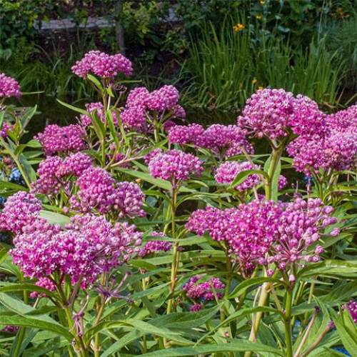 Характерная особенность цветков инкарнатного ваточника – они издают запах, напоминающий шоколадное масло. Благодаря этому растения привлекают в сад бабочек, пчел и других насекомых. Цветение начинается в середине июля и продолжается больше месяца (35-45 дней).